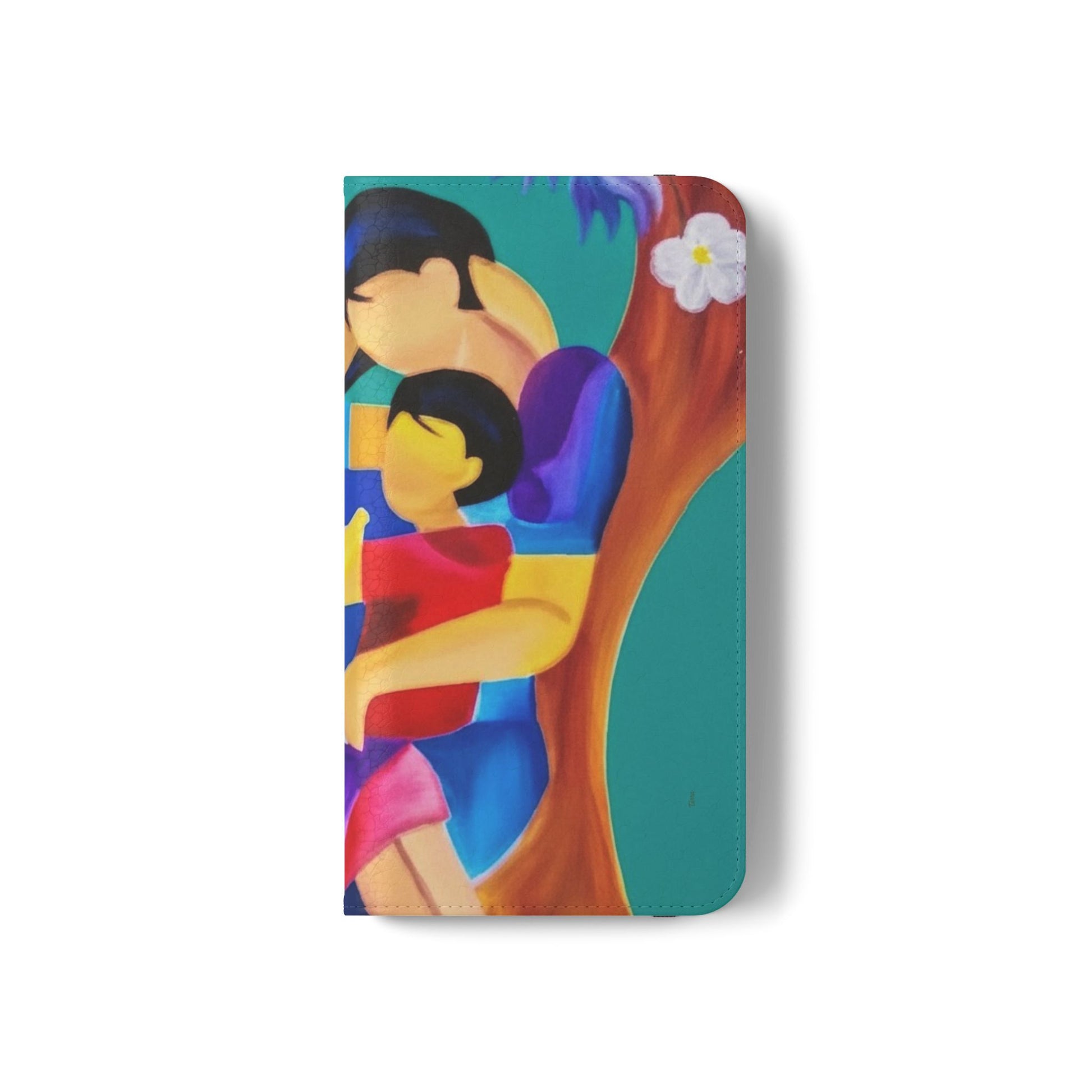 Elevate your daily carry with the Embrace of the Filipino Family Flip Case, where art and function blend seamlessly. This case draws from a tender, vibrant illustration of two parents cradling two children beneath flowering trees, symbolizing unity, warmth, and everyday protection. The central pose, where each figure's arms interlock, creates a protective circle—a visual metaphor for the care and security a family provides.